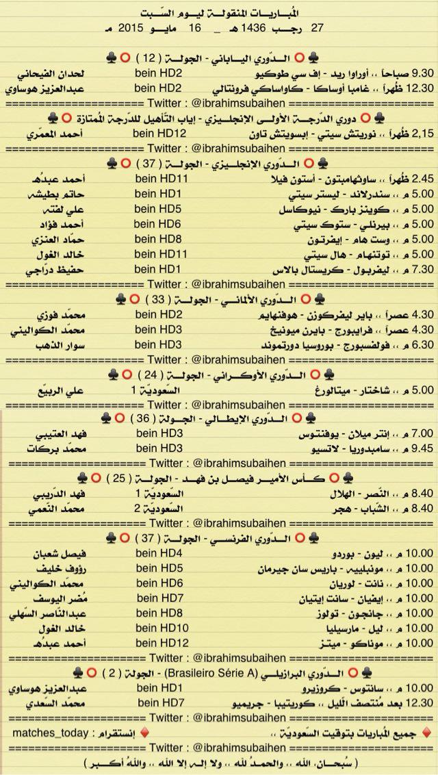 مباريات <> السبت ... {{ لدوريات العالميه }}